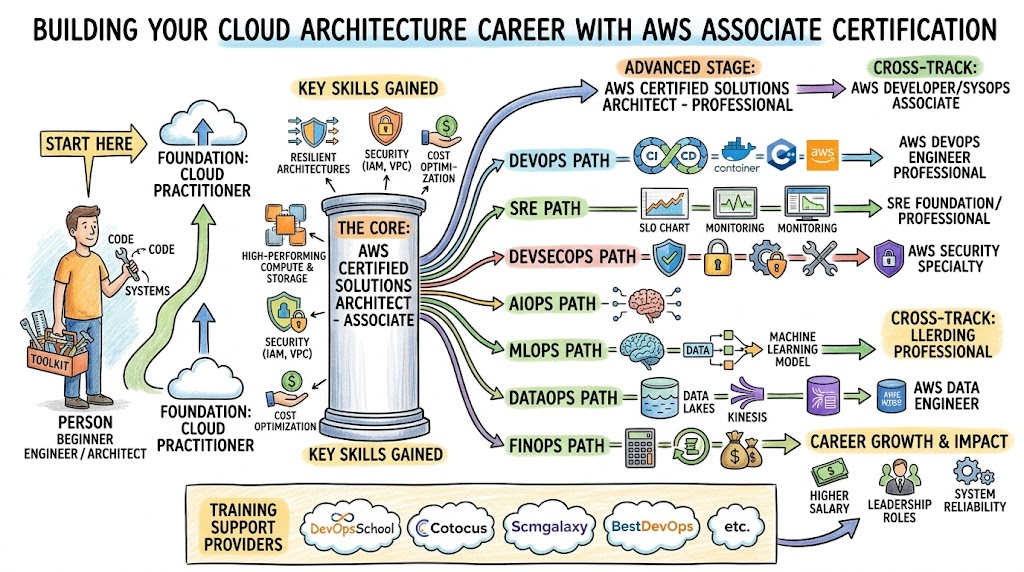 In the DevOps path, the Solutions Architect certification serves as the blueprint for building delivery pipelines. Engineers focus on how to use AWS services to facilitate continuous integration and deployment. You will learn to architect environments that support blue/green deployments and canary releases using Route 53 and ELB. This foundation allows you to build highly resilient systems where the infrastructure can be versioned and deployed just like application code.
