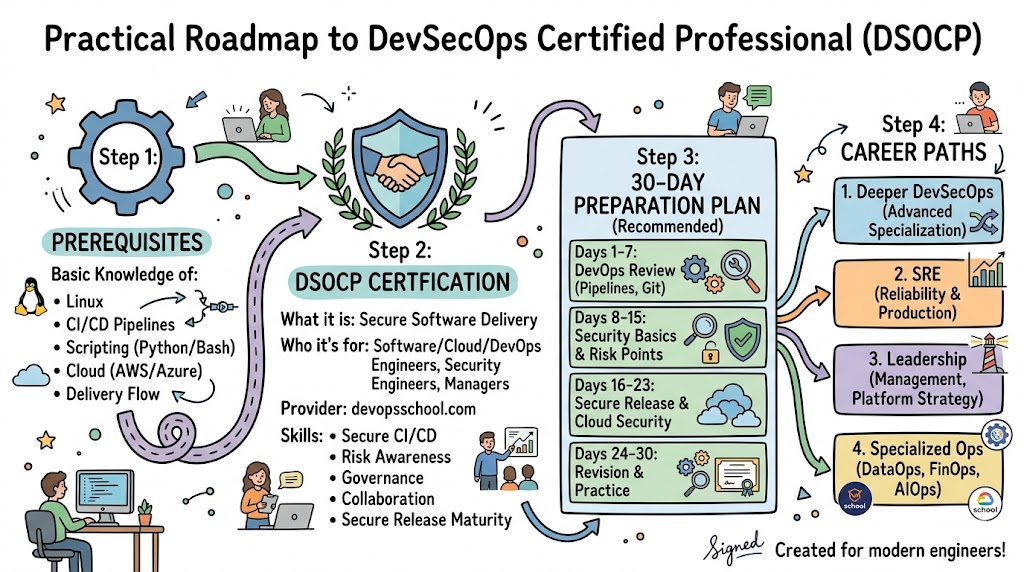 DevSecOps Certified Professional is more than a technical credential. It is a practical career step for people who want to build software delivery systems that are fast, mature, and secure. In today’s engineering environment, automation without security creates risk, and security without delivery awareness creates friction. DSOCP helps close that gap. It gives software engineers, cloud professionals, DevOps teams, platform engineers, and managers a stronger view of how modern secure delivery should work. For professionals who want long-term relevance, better role readiness, and stronger engineering credibility, DSOCP is a meaningful certification path to consider.