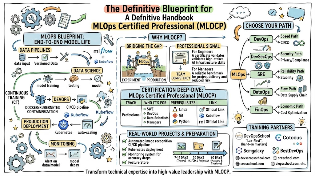 The engineers who thrive are those who adapt to the “next big thing” before it becomes the “only thing.” Machine Learning Operations is that “next thing.” The MLOCP certification is more than just a credential; it is a testament to your ability to lead in the age of AI. Whether you are an engineer looking to future-proof your career or a manager aiming to deliver successful AI products, mastering MLOps is your most strategic move. The path to becoming a world-class professional is rigorous, but it is a journey that will define the next decade of your career.